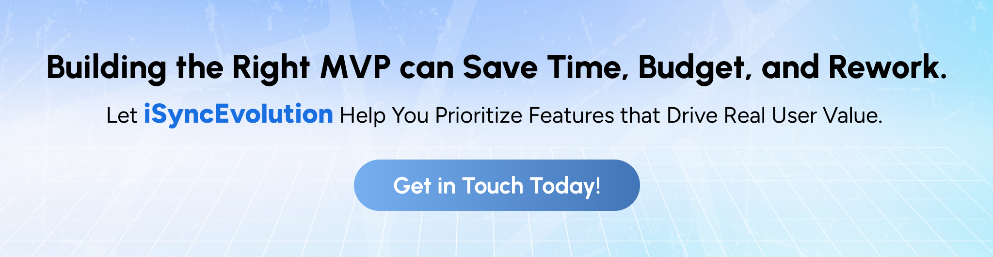 iSyncEvolution brings extensive experience in helping startups and enterprises navigate the complexities of MVP development. Our team understands how to plan MVP functionality, striking a balance between immediate market needs and long-term vision. We guide clients from initial concept validation through post-launch iterations, ensuring each decision aligns with objectives and user needs.